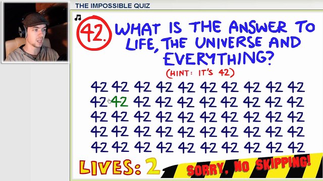 Below is a wall of 50 copies of the number 42 and in between theres a hint within parentheses saying Its 42. 55 The Impossible Quiz 2 is a worthy successor to its predecessor. Others are silly puns and some are just plain odd.